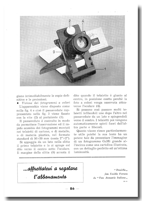 Sul numero 3 di Marzo 1955 di "Fotorivista" apparve un articolo di taglio "redazionale" che riportava le caratteristiche del visore. L'articolo utilizza le stesse foto e il testo del manuale di istruzione.